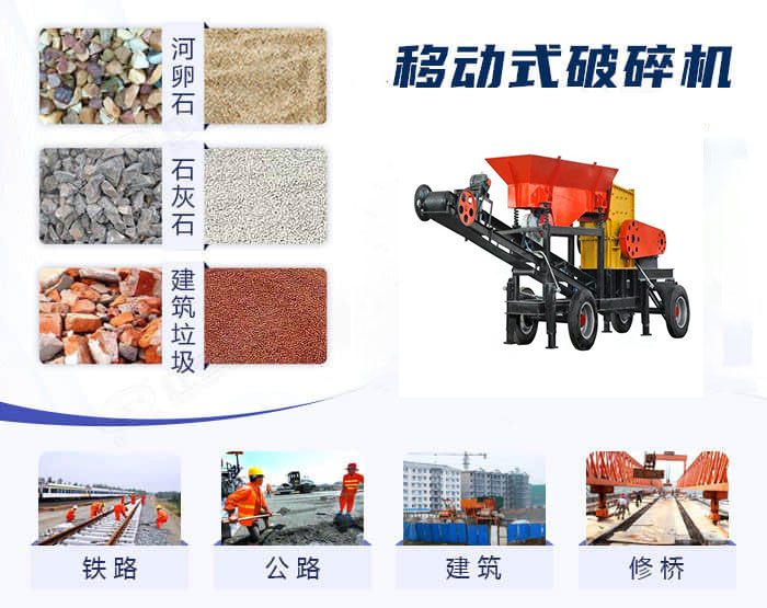 移动破碎机可破碎建筑垃圾、煤矸石、煤炭、河卵石、石英砂、花岗岩、玄武岩、铁矿石、石灰石、石英石等,尤其是需要搬迁作业的物料加工、流动性石料处理,常用在建筑垃圾处理、砂石料场、矿山开采、煤矿开采、混凝土搅拌站、干粉砂浆、电厂脱硫等领域中。