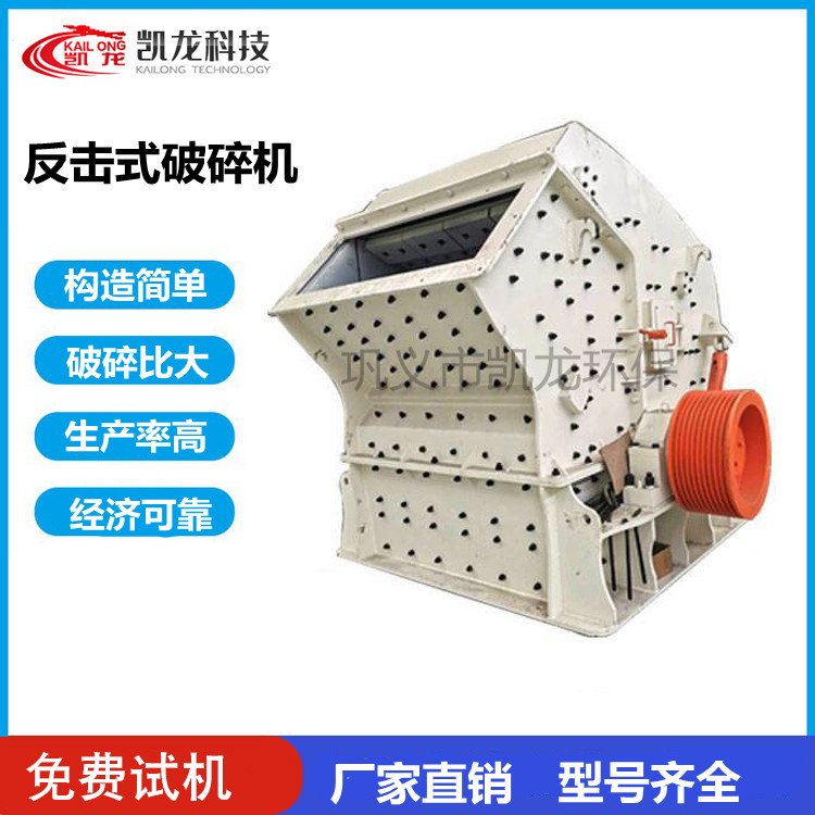 反击式破碎机是采用很新的制造技术,独特的结构设计,加工成品呈立方体、无张力和裂缝、粒形好,能破碎进料粒度不超过500mm、抗压强度不超过350MPa的各种粗、中、细物料(花岗岩、石灰石、混凝土等),其排料粒度大小可以调节,破碎规格多样化,广泛用于水电、高速公路、人工砂石料、破碎等行业。 凯龙环保-反击式 破碎机