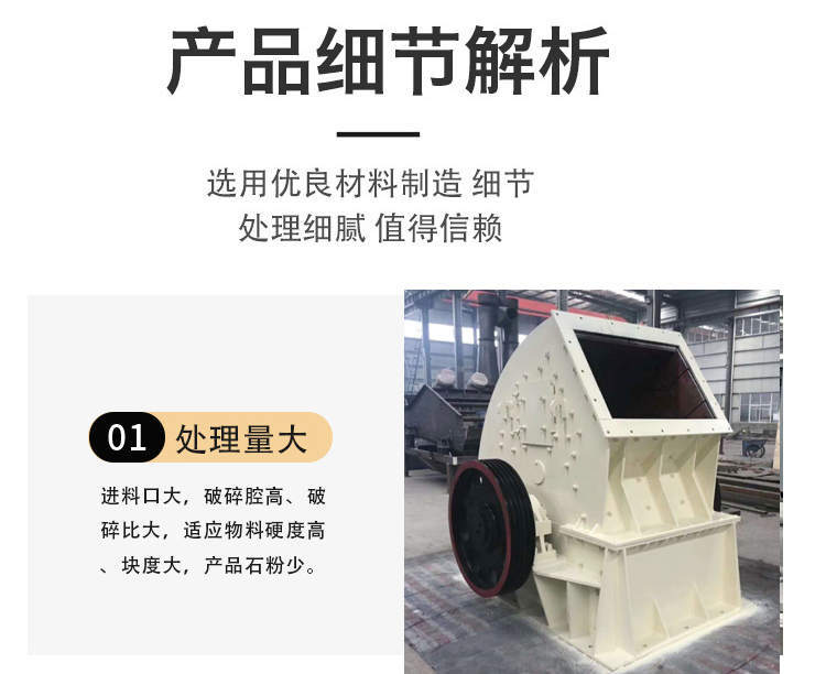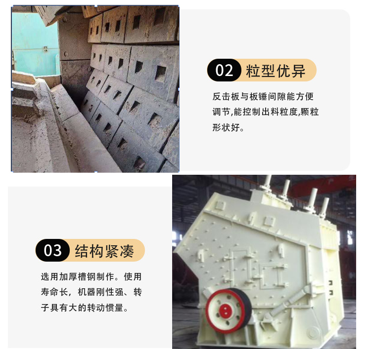反击式破碎机能破碎进料粒度不超过500mm、抗压强度不超过350MPa的各种粗、中、细石料(石灰岩、石灰石、混凝土等),尤其擅长加工韧性小,脆性大的矿石,成品棱角均匀,是常用的二级破碎设备,广泛应用于各种矿石破碎、铁路、高速公路、能源、水泥、化工、建筑等行业,其排料粒度大小可以调节,破碎规格多样化。