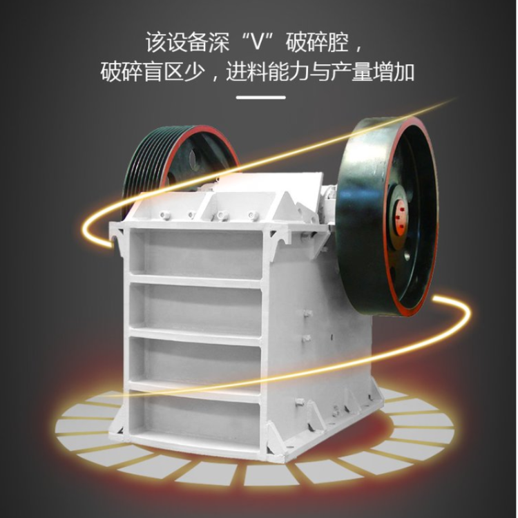 颚式破碎机的适应性高,对很多种物料都适合,是很好的碎石设备,它的排料口调整范围大,有效地增加了设备的灵活性,可满足多种生产要求。主要用于各种矿石和散状物料的中型破碎,可破碎抗压强度小于320Mpa的物料。是初级粉碎的理想设备。 颚式破碎机的特点在于将破碎腔型、运动参数的优化设计合理,不仅使机器产能和产品