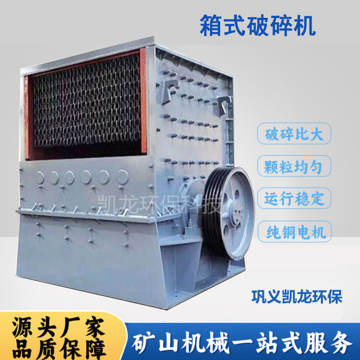 近年来我国破碎机矿山行业的技术与生产能力的大幅提高想,箱式破碎机是我们在二十多年生产实践的基础上综合同类破碎机的优点研制而成的。与同类规格产能的以颚式破碎机为主体的砂石料生产线相比,粗碎细碎合一碎,在250MPa以下的中硬物料的碎石生产工艺中,一台箱式破碎机替代了粗细两级颚式破碎机,大大减少了设备投资,提