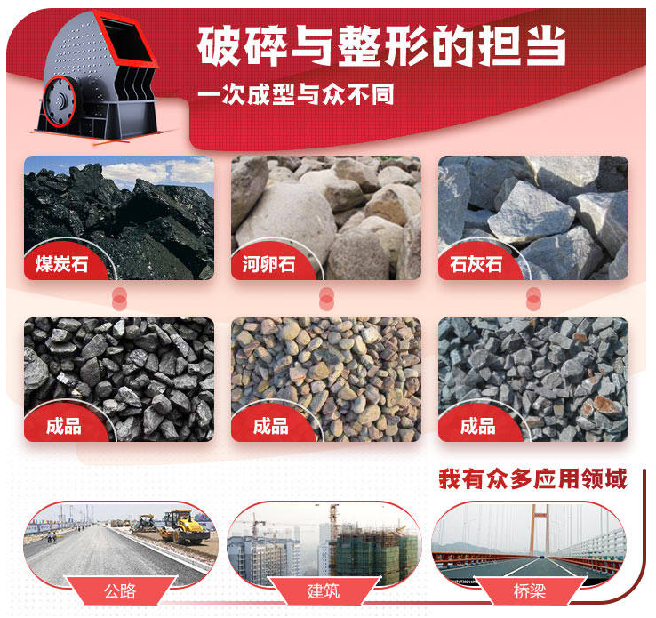 锤式破碎机的优点:破碎比大(一般为10-25,高者达50),生产能力高,产品均匀,过粉现象少,单位产品能耗低,结构简单,设备质量轻,操作维护容易等,适用于破碎各种中等硬度和脆性物料,如石灰石、煤、盐、白亚、石膏、明矾、砖、瓦、煤矸石等。被破碎物料的抗压强度不超过150兆帕。该机主要用于水泥、选煤、发电、建材及复合肥等行业,它可以把大小不同的原料破碎成均匀颗粒,以利于下道工序加工,机械结构可靠,生产效率高,适用性好。